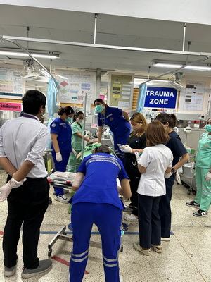 ประเมิน initial assessment ได้ว่าผู้ป่วยต้องได้รับ emergency management ตามเปล กดกริ่ง และนําส่งโซนแดงได้รวดเร็ว