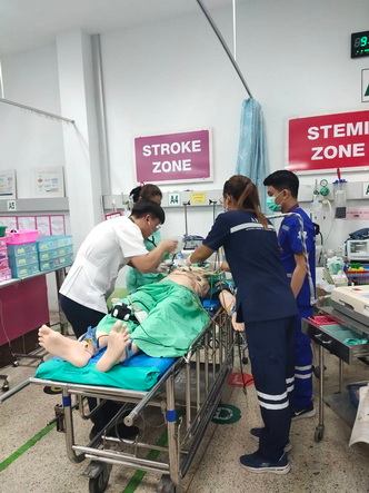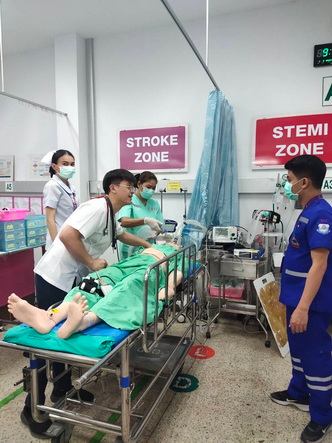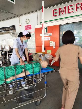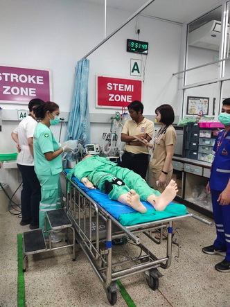 สามารถประเมินได้ว่า ผู้ป่วยต้องการ emergency management : ตามเปล กดกริ่ง น าเข้า zone resuscitation