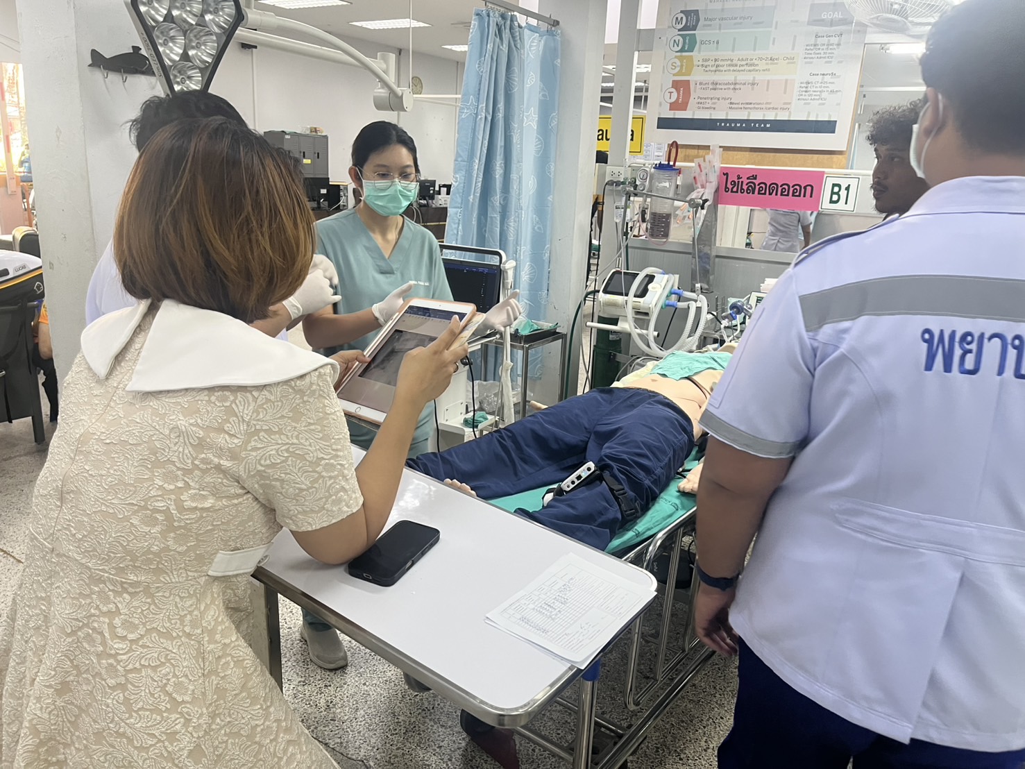 - การแบ่งหน้าที่ในทีม ขาด Recorder ในช่วงต้น เนื่องจาก Resuscitation Zone มีเคสจริงที่ต้องทำหัตถการ (Intubation) หลังจากนั้นเรียกคนเพิ่ม สามารถแบ่งหน้าที่ชัดเจนขึ้น