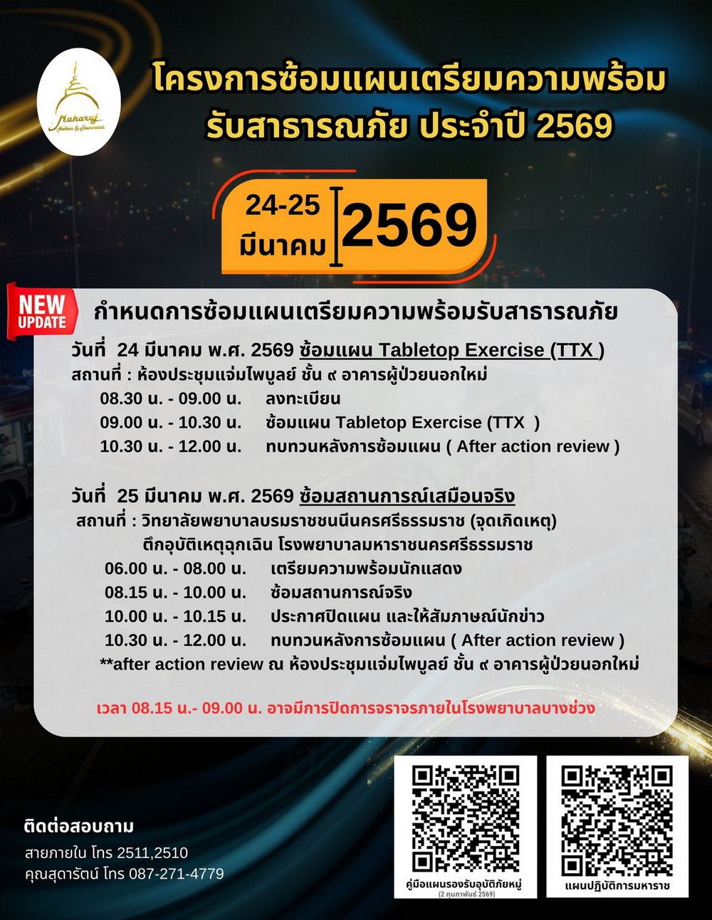 โรงพยาบาลมหาราชนครศรีธรรมราช และกลุ่มงานเวชศาสตร์ฉุกเฉิน จัดงานซ้อมแผนเตรีย…