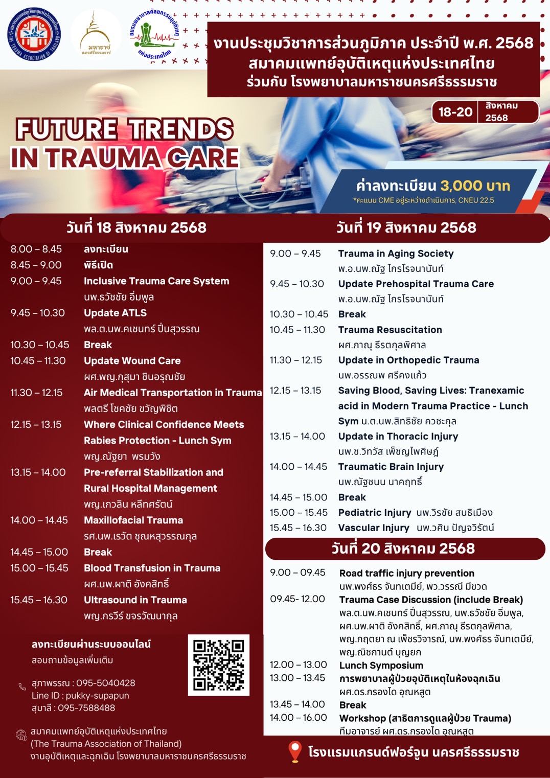 งานประชุมวิชาการส่วนภูมิภาค ประจำปี 2568 โดยสมาคมแพทย์อุบัติเหตุแห่งประเทศไทย ร่วมกับ โรงพยาบาลมหาราชนครศรีธรรมราช