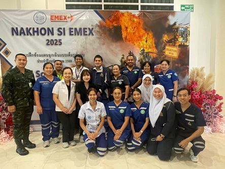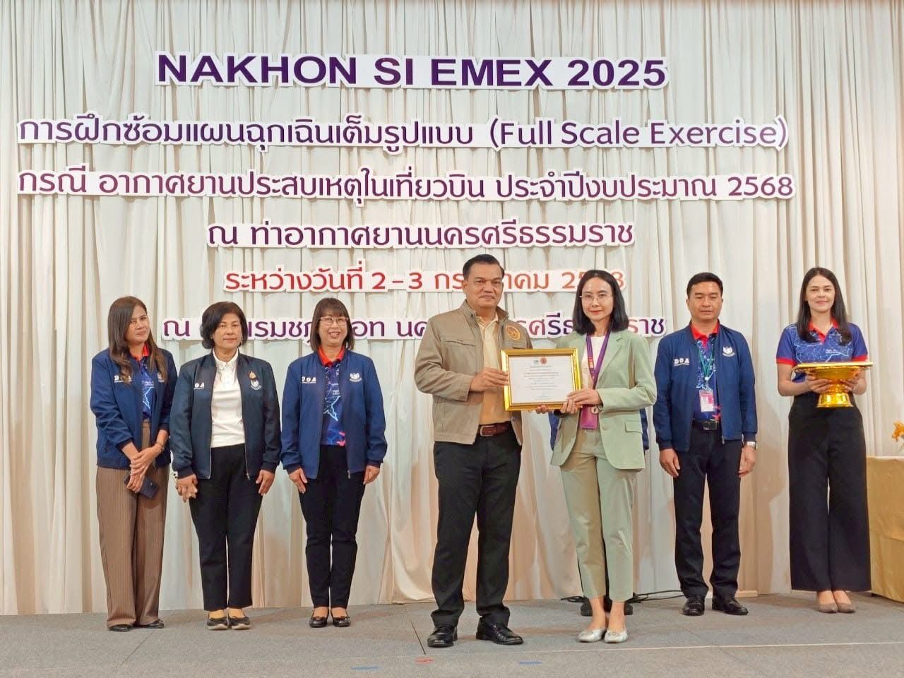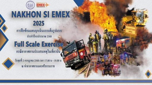 กลุ่มงานเวชศาสตร์ฉุกเฉิน โรงพยาบาลมหาราชนครศรีธรรมราช และศูนย์รับแจ้งเหตุและสั่งการจังหวัดนครศรีธรรมราช ได้เข้าร่วมการฝึกซ้อมแผนฉุกเฉินเต็มรูปแบบ (Full Scale Exercise) ท่าอากาศยานนครศรีธรรมราช ประจำปี 2568 กรณีอากาศยานประสบเหตุในเที่ยวบิน (์NAKHONSI-EMEX 2025) ในวันที่ 2 กรกฎาคม 2568 เวลา 17:00-19:00 โดยท่าอากาศยานนครศรีธรรมราช กรมท่าอากาศยาน และมีหน่วยงานต่างๆทางการแพทย์ทั้งภาครัฐและเอกชน ผู้แทนส่วนราชการ ผู้แทนสายการบิน ผู้ประกอบการ มูลนิธิและอาสาสมัครกู้ชีพกู้ภัย เข้าร่วมฝึกซ้อมด้วย