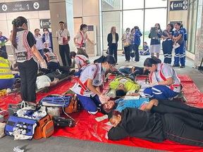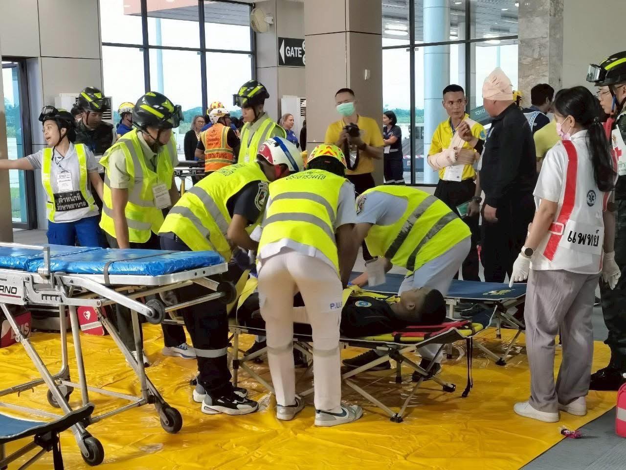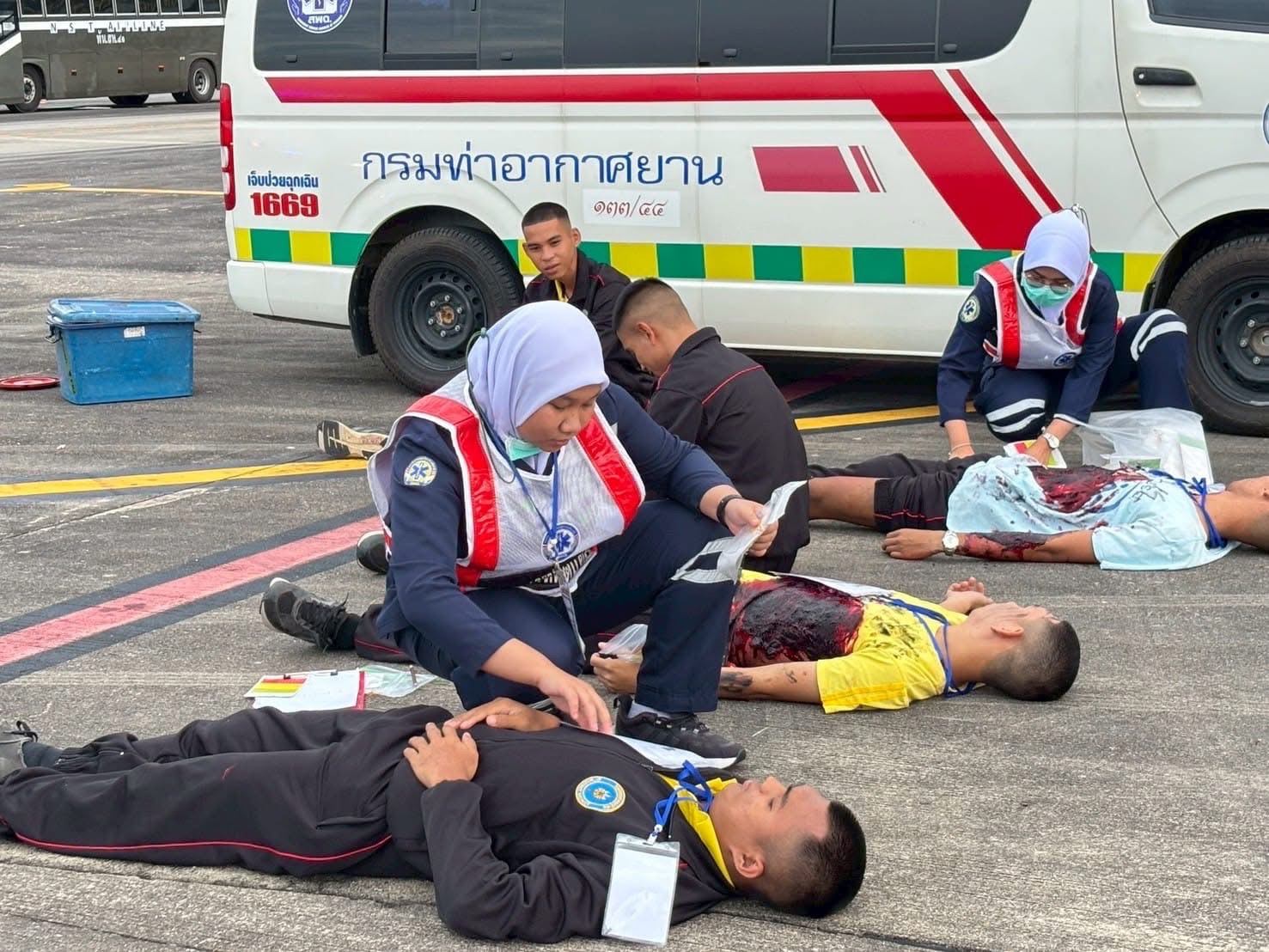สถานการณ์สมมติในการฝึกซ้อมครั้งนี้ ได้กำหนดให้ หอควบคุมการจราจรทางอากาศนครศรีธรรมราช แจ้งเหตุเครื่องบินแบบ Airbus A320 ของสายการบิน NST Airline เที่ยวบิน NS666 เส้นทางท่าอากาศยานดอนเมือง-ท่าอากาศยานนครศรีธรรมราช ซึ่งอยู่ระหว่างการบินลดระดับเพื่อเตรียมลงจอด เกิดเหตุฐานล้อไม่กางและขอลงจอดฉุกเฉิน จากนั้นเมื่อนักบินนำเครื่องบินลงจอดโดยใช้ทางวิ่ง 19 เครื่องบินได้เกิดอุบัติเหตุไถลออกนอกทางวิ่ง ทำให้เกิดเพลิงลุกไหม้และมีผู้บาดเจ็บทั้งบาดเจ็บเล็กน้อย ปานกลาง และสาหัส โดยมีการฝึกซ้อมการลำเลียงผู้บาดเจ็บ เพื่อปฐมพยาบาลและคัดแยกความรุนแรงตามอาการ ก่อนส่งตัวเข้ารับการรักษาต่อตามโรงพยาบาลต่างๆ ในพื้นที่ใกล้เคียง